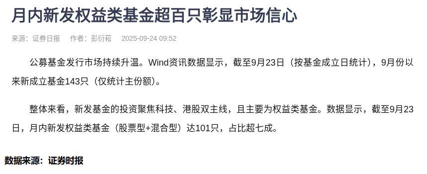 Wind数据显示,9月新成立的143只基金中,权益类产品占比超七成。富国机器人ETF、天弘港股通科技这些专业赛道产品尤其受追捧。表面看是投资者对科技、港股的信心恢复,但你知道这些钱最后会流向哪里吗?