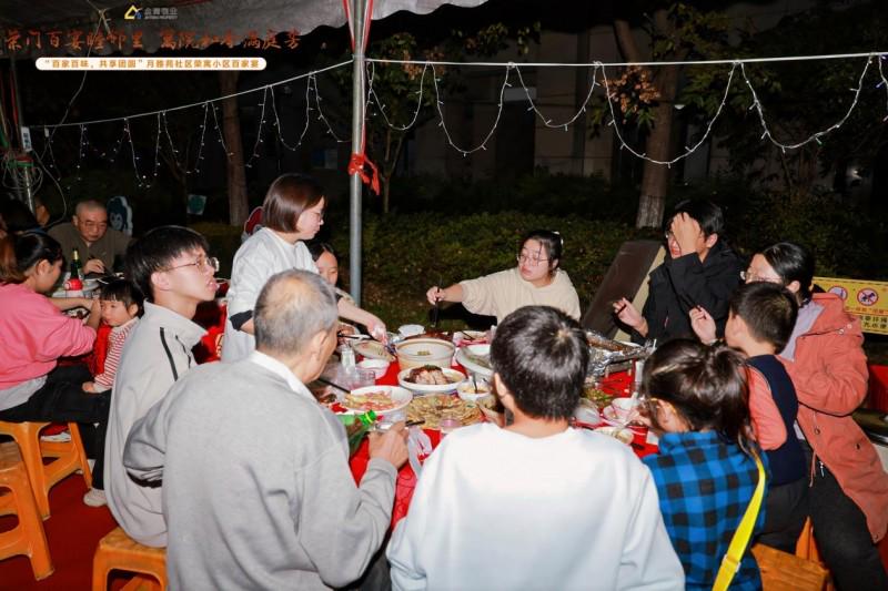 10月25日17时,杭州钱塘区白杨街道荣寓小区的露天广场上,数十张餐桌整齐排开加配网,红烧肉的油亮、清蒸鱼的鲜嫩、杭三鲜的鲜醇,再加上业主们各自带来的拿手好菜,近百道菜品整齐上桌,汇聚成一场热气腾腾的“百家宴”。现场,300余名业主欢聚一堂,用美食串联情谊,以欢笑传递温暖,让“远亲不如近邻”的美好愿景在烟火气中落地生根。